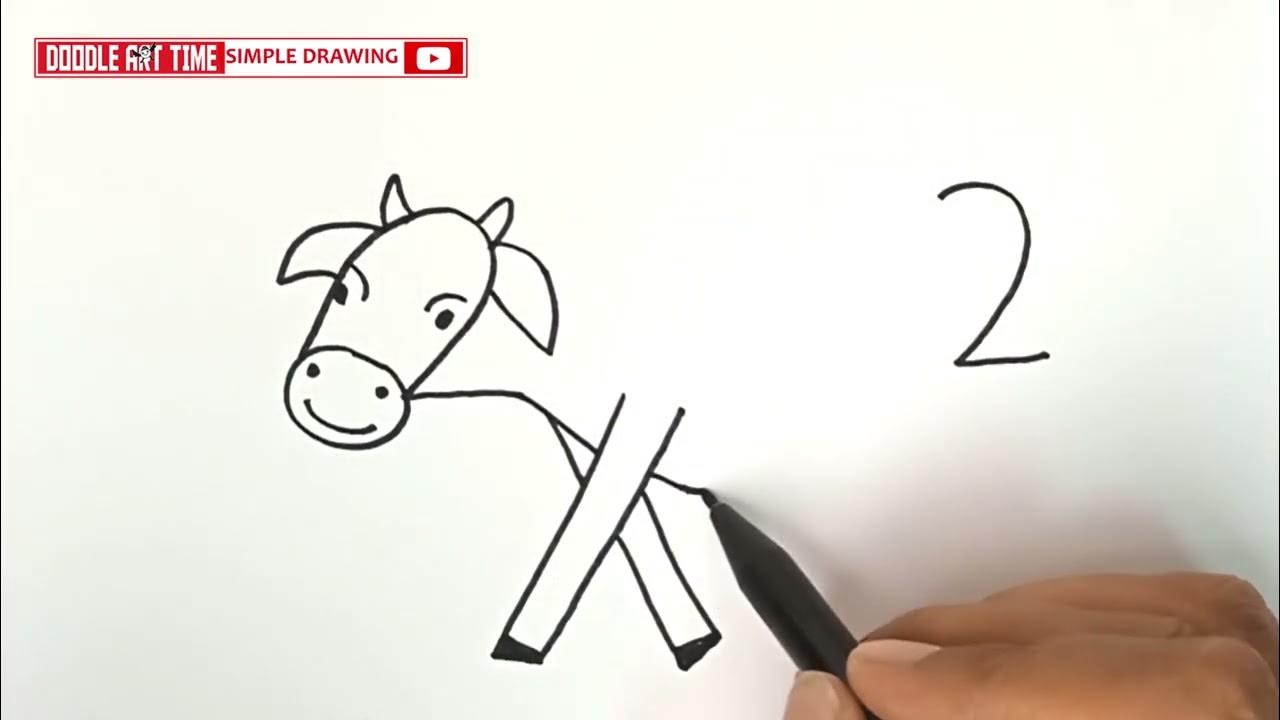 Very Easy Cow Drawing How To Draw Easy Cow Step By Step Drawing Hobby Simple Animal Drawings Youtube